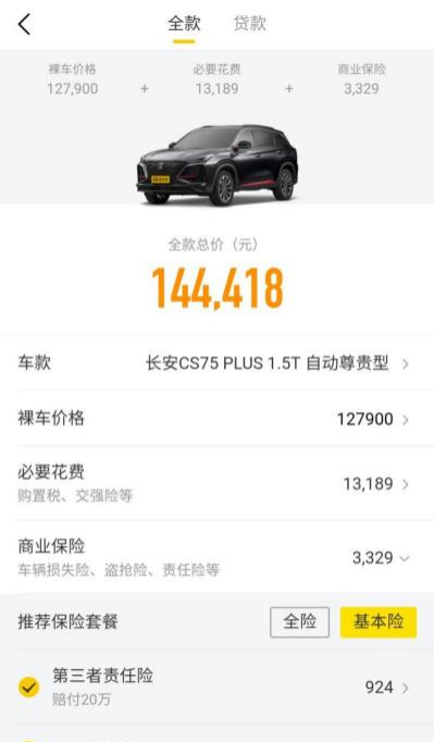 反观,如果入手一辆长安CS75 PLUS 1.5T尊贵型,官方指导价为13.19万元,同样扣除基本优惠,落地价约在14.4万元(含税务、保险等费用),余约5.5千元同样用来支付后续保险。