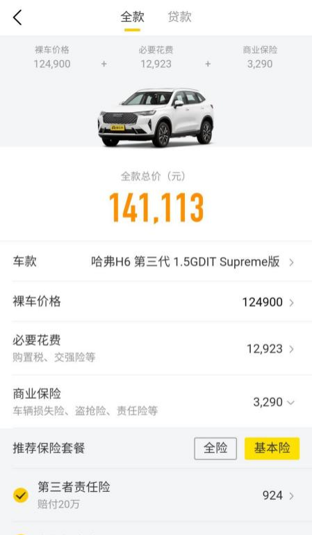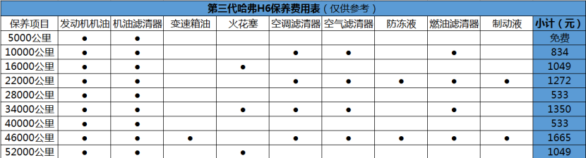 如果入手一辆第三代哈弗H6 Supreme版,官方指导价为13.49万元,计算正常基础优惠落地价约14.1万元(含税务、保险等费用),预算余富的8.8千元用来支付后续保险费。保养方面,首次保养免费,之后每6千公里保养一次,合计保养费约9.1千元。