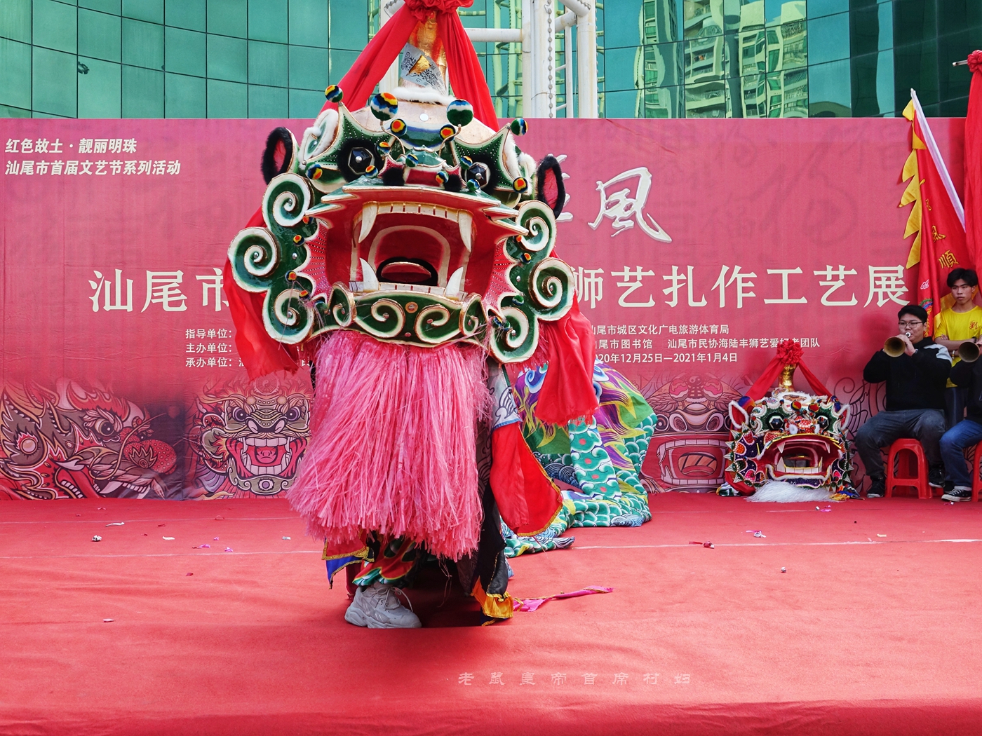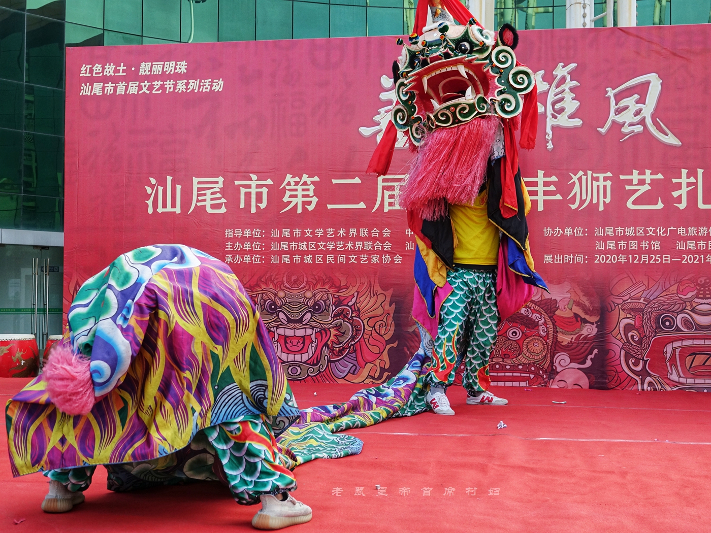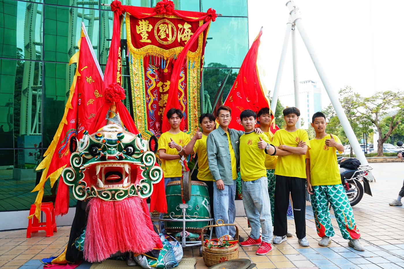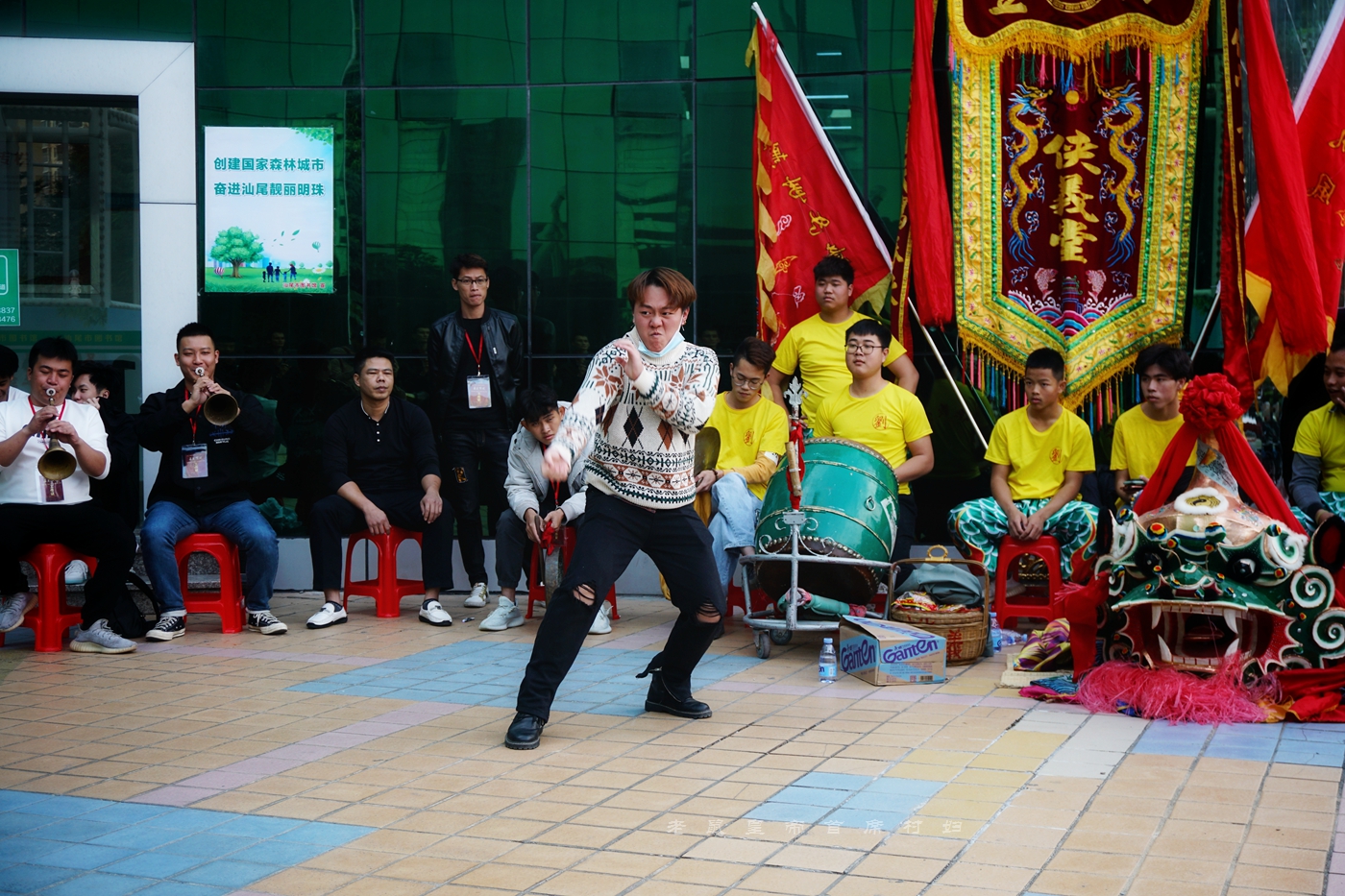 我们看到的是海丰刘班子的表演,舞狮尾的男孩子看上去面容稚嫩,一问居然才14岁,他告诉我们,舅父也是从事这一行业的,受家人影响,大小喜欢,等到个头长得差不多了,果断入了行。