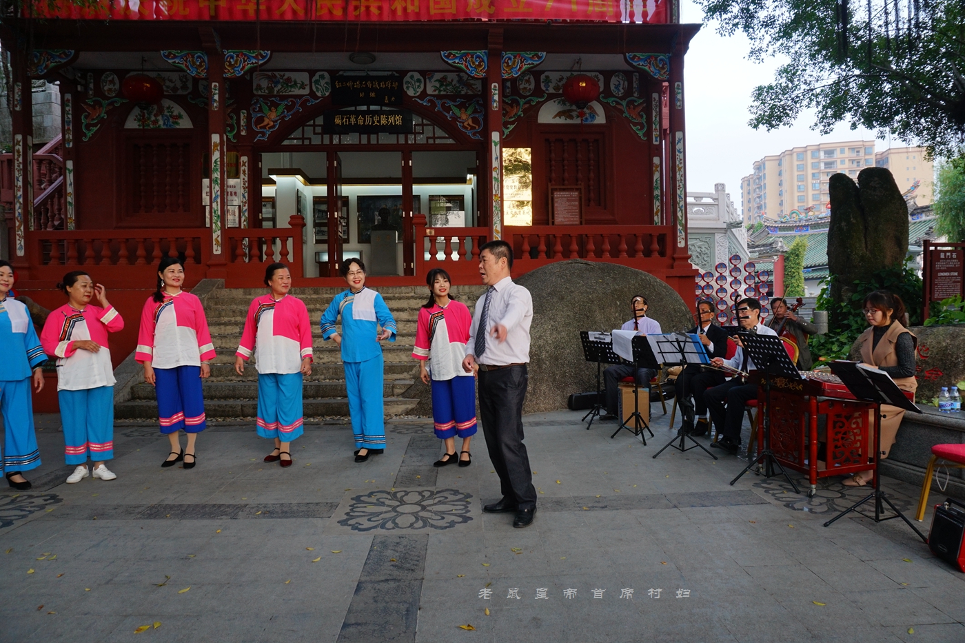 我们在碣石镇玄武山采风时,刚好遇上一个小剧团在表演曲目《锦海渔歌》,唱腔动人,形式活泼,引得围观者喝彩不断。