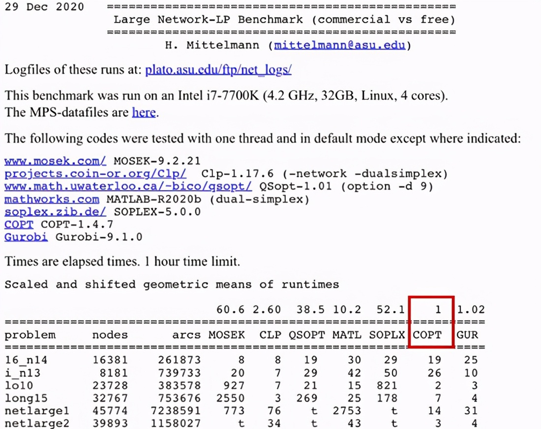 图三: COPT在线性规划大规模网络问题榜单上首次登顶冠军宝座