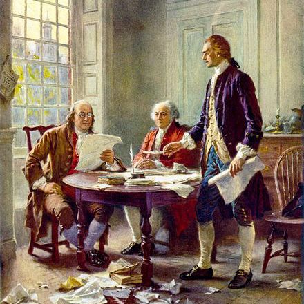 富兰克林,亚当斯和杰斐逊在起草宣言