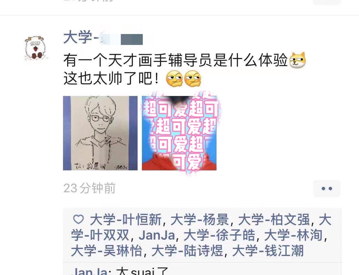 不少收到礼物的学生直呼“画得挺像的”,也有不少男生调侃画得没本人帅。