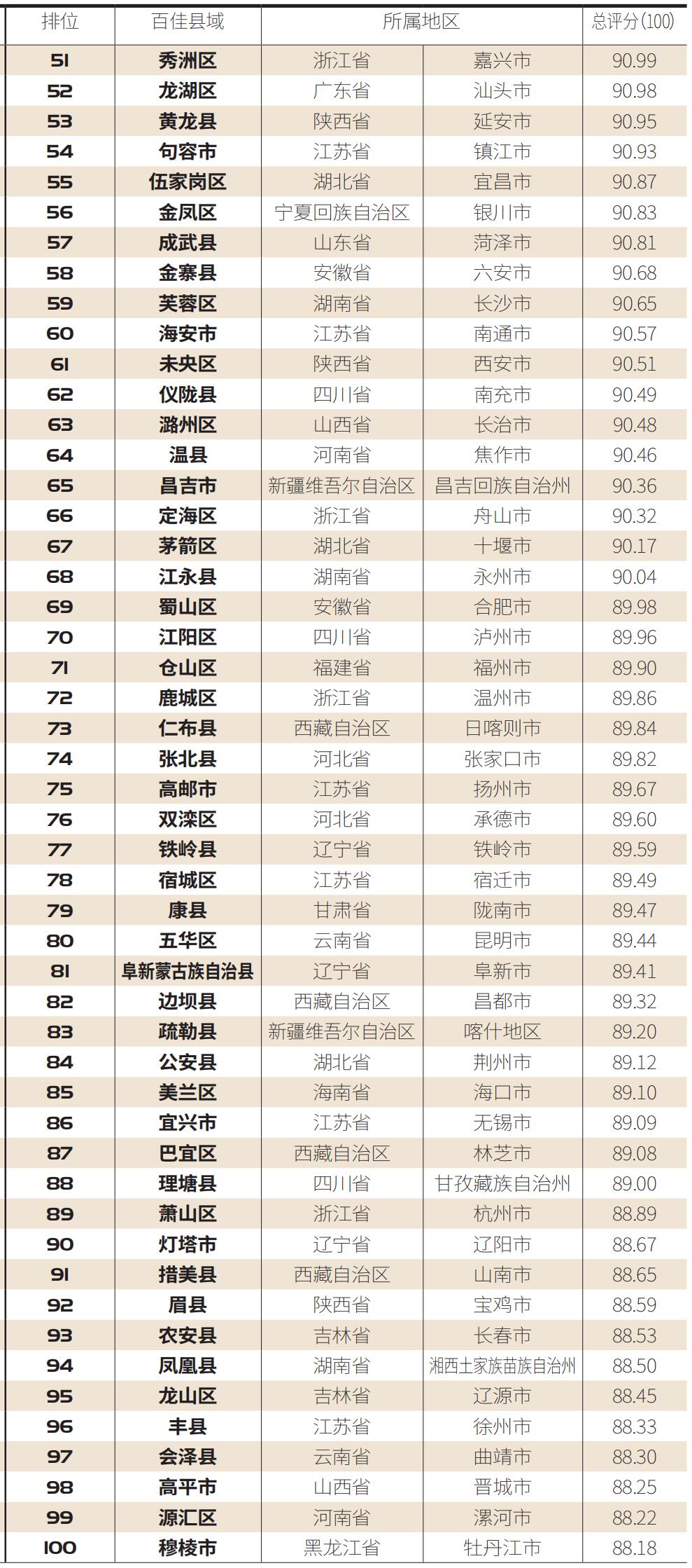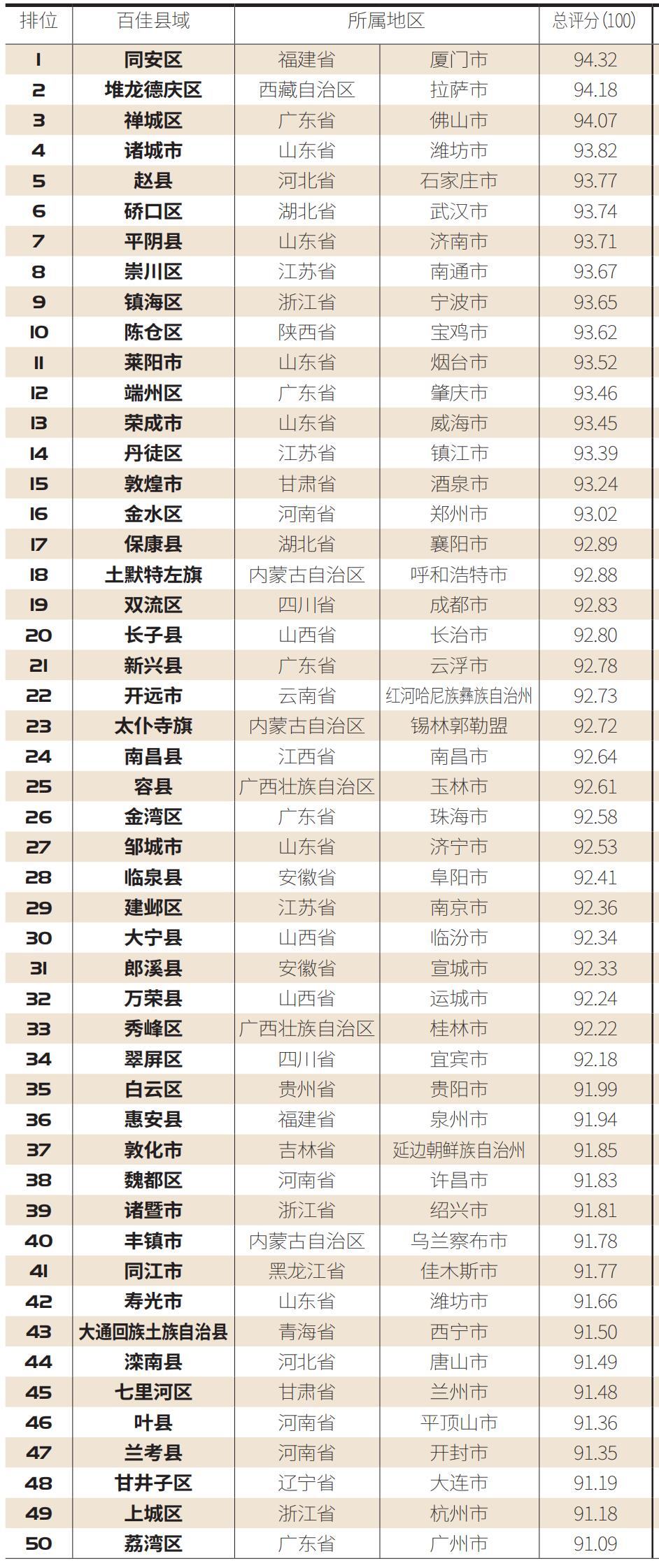 2021中国放心食品百佳县市(完整榜单)
