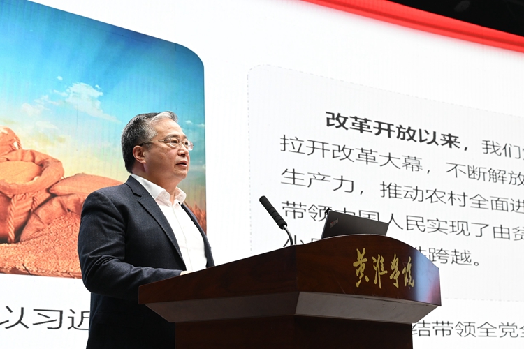 李国胜在致辞中代表学校对与会人员的到来表示热烈欢迎。他指出,乡村振兴是党中央审时度势、提前谋划,提出的重大战略。黄淮学院在办学过程中,主动担当起乡村振兴领军队伍的历史重任,依托人才、智力优势,成立我省第一个乡村振兴学院,打造美丽乡村示范点,助推驻马店乡村振兴走在全省前列。面向未来,黄淮学院将继续坚持扎根中国大地办大学、坚持扎根天中大地办大学,以服务好、推动好区域经济社会发展作为黄淮学院始终不渝的初心使命,充分发挥人才优势,当好乡村振兴的“思想库”;发挥专业优势,当好乡村振兴的“设计师”;打造典型示范,当好乡村振兴模式的“输出源”;加强教育培训,当好乡村振兴人才的“孵化器”。黄淮学院将以更大的格局、更大的担当和更大的气魄书写好新时代乡村振兴“黄淮答卷”,真正实现乡村让生活更美好。