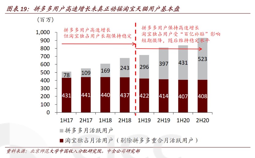此外,淘宝天猫在用户端也吸引了一大批优质消费者,更多的优质消费者又进一步吸引商家入驻,在阿里的电商生态体系内形成了可持续的良性循环。无论外部竞争者对阿里巴巴发起的局部挑战多么激烈、采取何种激进的补贴方式,淘宝天猫始终拥有一大批优质、消费能力强的忠实消费者,对淘宝天猫保持超强粘性。