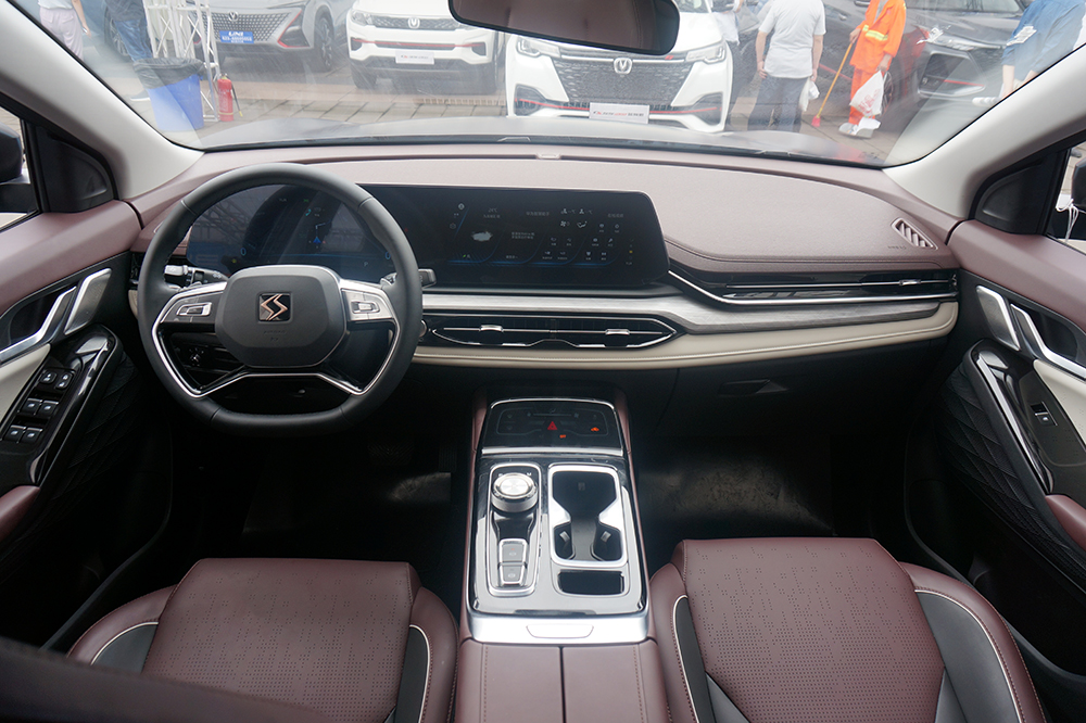 比较惊喜的是,作为大众旗下子品牌,思皓QX的中控部分和门板部门手常触及的地方,几乎都用软性材质进行了包裹,手感不错,内部的舒适豪华感也得到了一定的提升。色彩方面,整体以棕色为主,中控区域空调出风口部分,采用纹路比较高级的银色饰板和米白色的软性材质包裹在视觉上进行点亮,而门板部分,则在用材和色调方面做到了统一,因此车内的高级感也得到一定的保证。