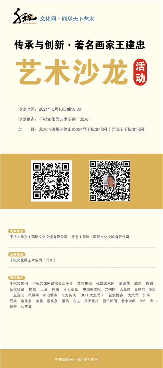 千祝文化网讯,5月16日晚 7:30分,由千祝(北京)国际文化交流有限公司,芳艺(天津)国际文化交流有限公司主办,千祝文化网(北京)承办的传承与创新-王建忠国画作品主题沙龙活动,在千祝文化网艺术空间完美落幕。展览共展出30余幅书画作品,以写意花鸟为主,旨趣兼容传统与当代。作品笔力遒劲,线条雄健老辣,用笔果断精练,技法娴熟,意境幽深。本次展览从不同角度与层面呈现出艺术家的学术造诣,为广大绘画喜爱者提供了一次难得的学习交流机会,进一步丰富了大家的精神文化生活。