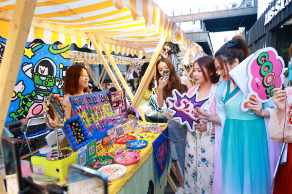她们不时和逛街的情侣、亲子互动街访,不时又与摊主交流夜市心得,穿梭于现代化的琶醍与大唐朝的不夜城之间,手持自拍杆,载歌载播!古代人的口福,肯定比不上这四位“女团回锅肉”,因为珠江雪堡-蔓越莓精酿啤酒,随时随地为直播团队消暑解渴!