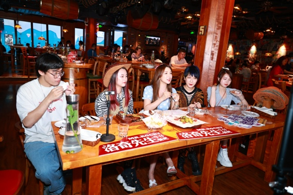 第一晚的主播是来自大众点评的「大吃货糖贝贝」和「卢猫儿」,她们带着J10签约歌手Jinna和家俊一起空降Mr Rocky!餐吧内的游客纷纷挥手拍照,受欢迎程度宛如小型音乐会!主播们精神抖擞,拿出浑身解数,全情展示洛奇的美味牛扒,直播间的购物车瞬间被抢光!