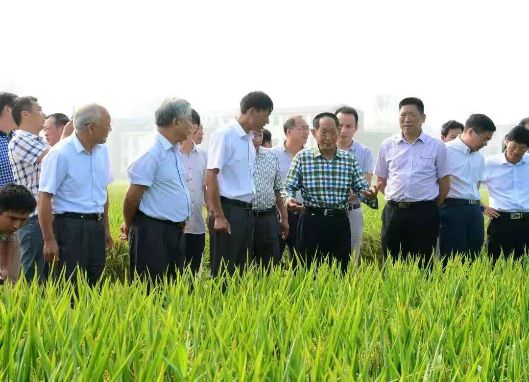 2015年8月28日.袁隆平院士考察与河南农业大学共建的光山县超级水稻试验田