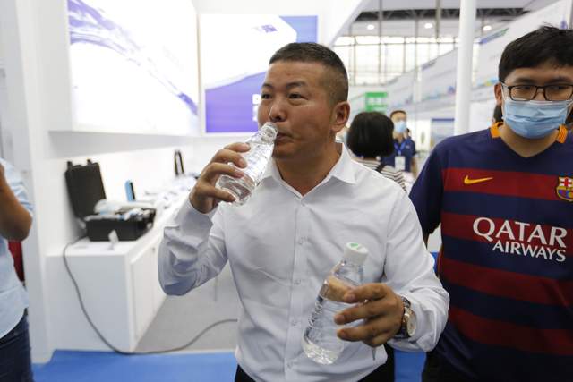 北京咖本水生态环境修复有限公司展出了世界首创,具有中国原创自主知识产权的场效应水体矿化还原技术与设备。中国环境科学学会环保科技成果鉴定表明:“碳纳米矿化还原环境治理技术及配套设备,基于碳纳米复合材料在微电流作用下,同时具有氧化性和还原性的特点,可以将水中的有机化合物充分分解,对藻类、黑臭水体及底泥治理效果明显,弥补了目前常规水处理方法中存在的一些不足,达到国际先进水平”。在展会当天,北京咖本水生态环境修复有限公司人员,亲口喝下了经过该技术净化过的污水,据称经过净化处理的污水,水质已经达到一类水的标准。该技术的研发成功使我国成为唯一拥有大气、水、土壤协同共治“污染水体矿化还原治理技术”的国家。该技术设备经投放市场后,已完成保定北湖、内蒙托克托、巢湖等50余个污染水体试验与治理工程,上海金铎禹辰水环境工程公司、河北美普兰地环保科技公司等用户反馈效果良好。