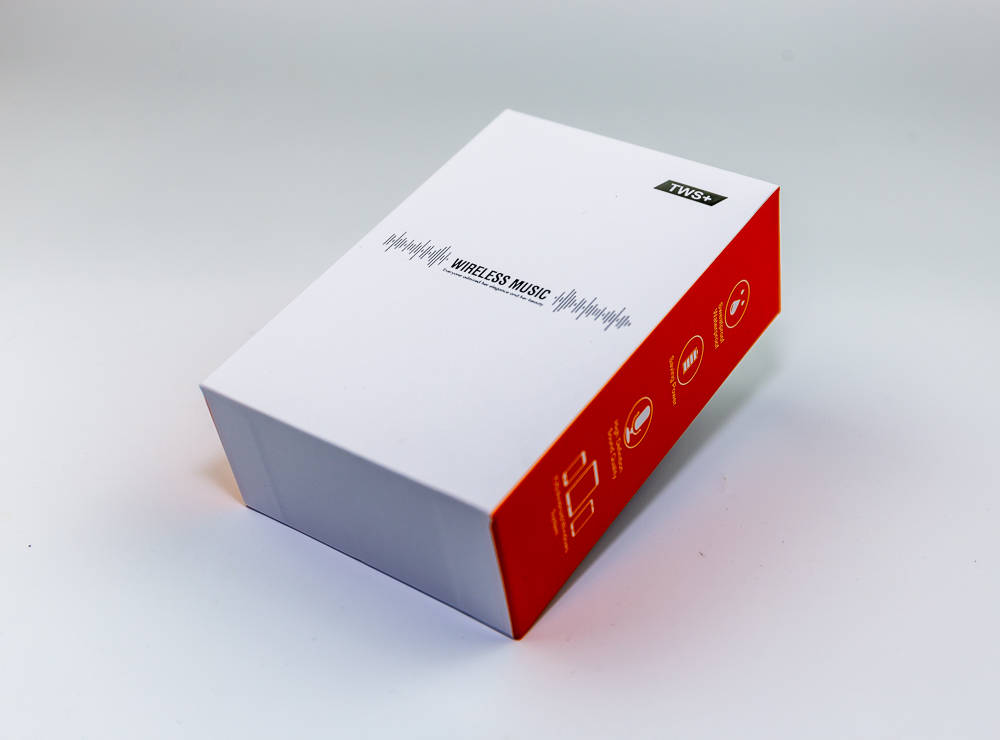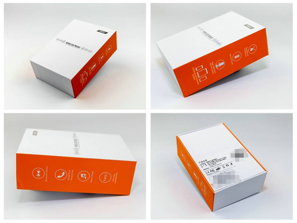 这款耳机的宣言有点奇特的,最开始是Wireless Music,无线音乐,然后下面有一排小字:Everyone admired her elegance and her beauty。每个人都钦佩她的高雅和美丽。也许这就是这款耳机设计师的初衷吧,设计一款高雅而美丽的产品,让每个人都羡慕和钦佩。上面银色标注了TWS+,因此这是一款真无线耳机。并且+意味着这款真无线耳机有进一步的发展。包装盒的左右两侧列举了产品的8大特点: