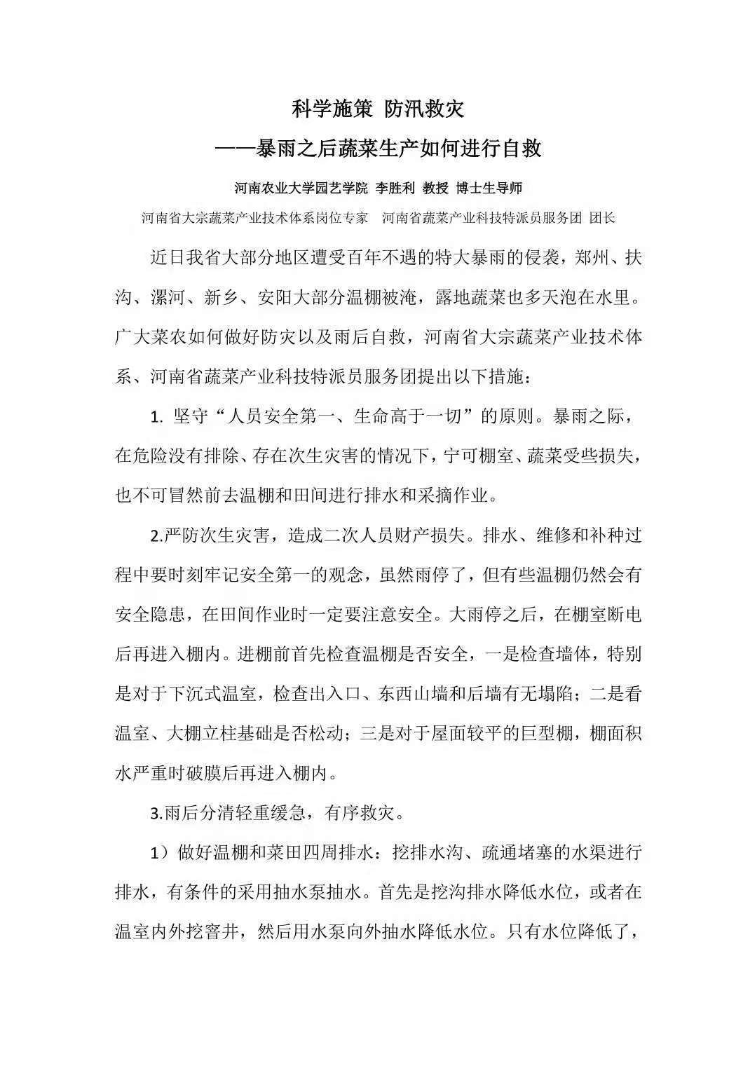 据悉,河南农大将根据灾后农业生产需要,充分发挥农业科技优势和人才优势,不断更新专家服务团名单,对接更多有需要的农户农企,全力为我省农业防灾减灾工作提供科技支撑,为保障农业粮食生产稳定提供坚强后盾。