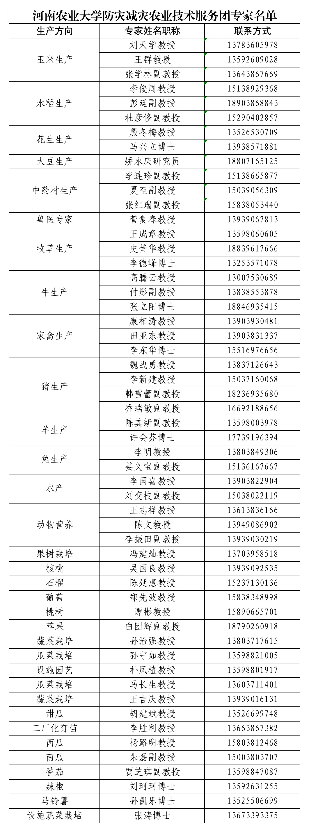 去年疫情,河南农业大学在网上公布了40多位资深农业专家的联系方式,涵盖小麦生产、畜牧生产、特色产业三大类14个领域,全力指导疫情下的农业生产。