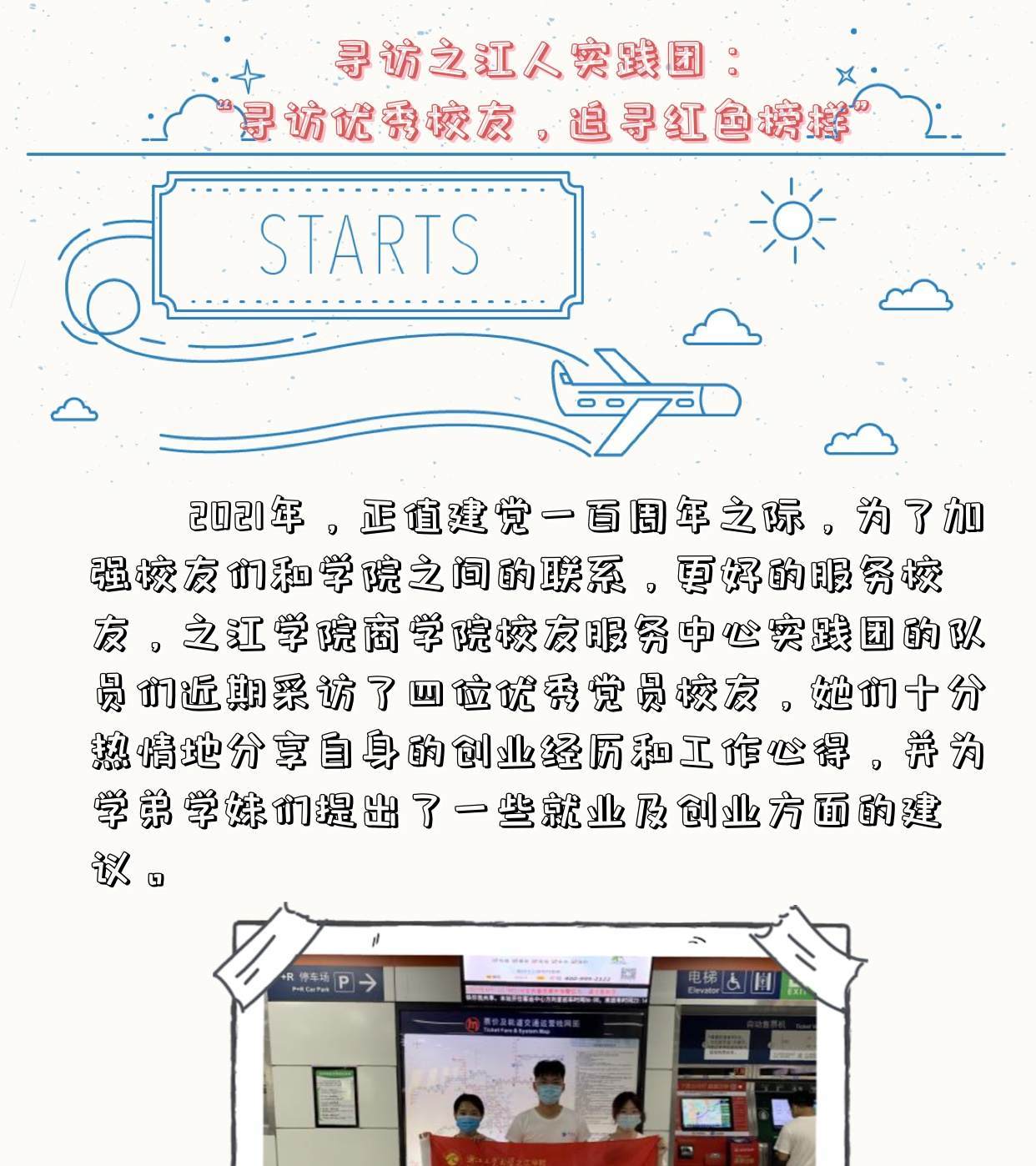 今年暑期,之江学院寻访之江人实践团再一次踏上征程,他们采访了四位优秀党员校友,优秀校友们分享自身的创业经历和工作心得,为学弟学妹们提出了一些就业及创业方面的建议。