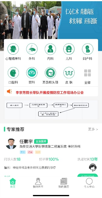 ■ 疫情期间,请在上午8:00-12:00,下午14:00-18:00申请问诊,在非工作时间段申请问诊并挂号成功视为预约号,接诊医师上线后按顺序呼叫接诊。