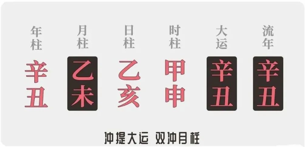 即,大运干支冲了月柱(月柱被称为大运提纲,故冲提)