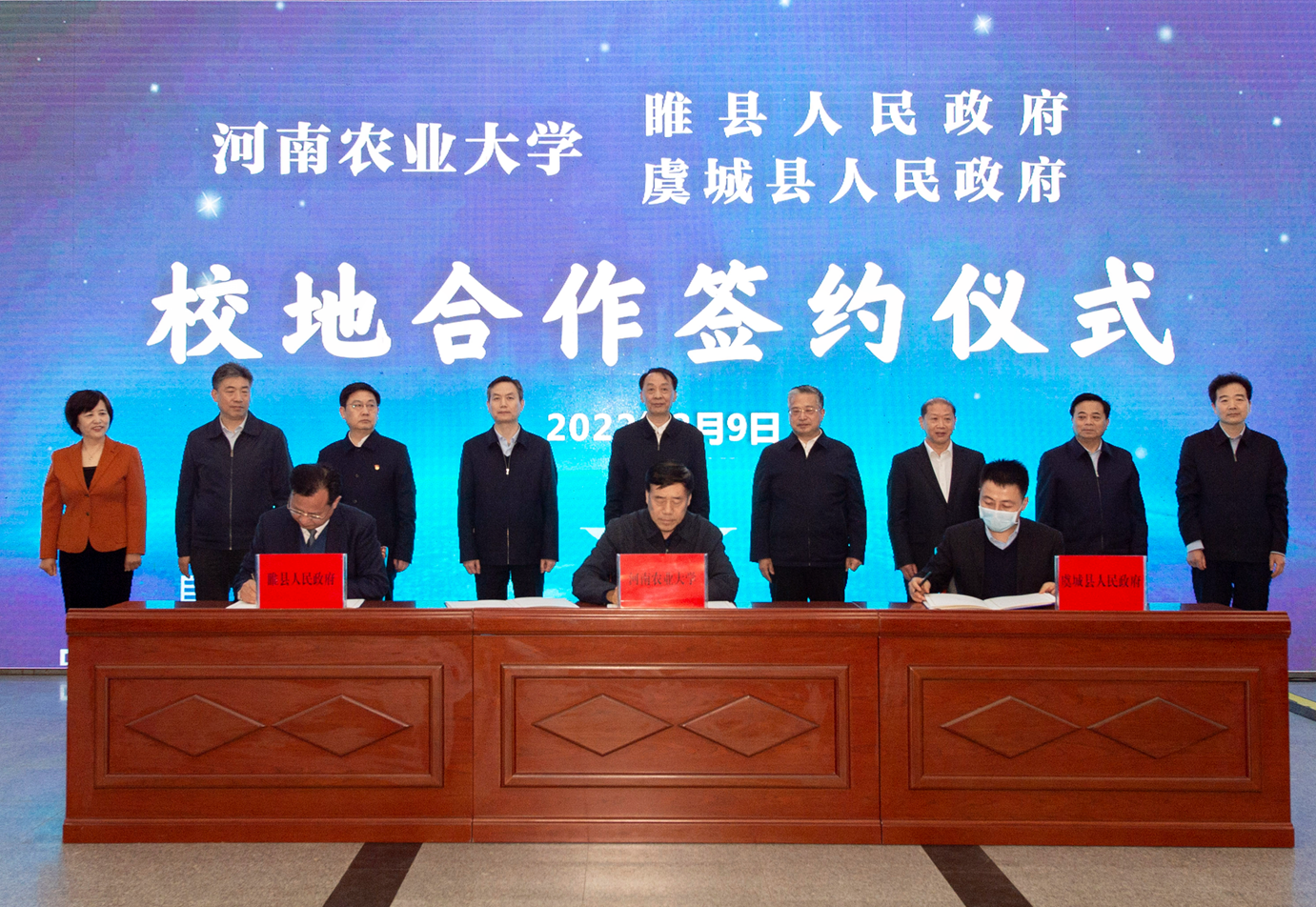 签约仪式上,河南农业大学还分别与睢县人民政府、虞城县人民政府、商丘市国营民权农场、宁陵豫东牧业有限公司签署校地、校企合作协议。