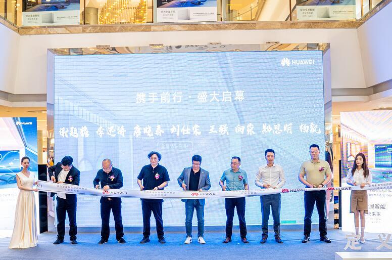 最后,在主持人的引导下,成都市建筑装饰协会常务副秘书长谢题檐、四川省室内装饰协会会长唐晓春、成都基准方中建筑设计有限公司执行董事、总经理李迅涛、大中华终端全屋智能渠道经理 张正、四川华智有为智能科技有限公司董事长 王强、红星美凯龙成都区域管理中心总经理兼四川1号店、成都至尊mall总经理向崇、中国邮电器材西南有限公司党委副书记、总经理 郑思明、优你互联中海美居四川区域负责人杨飘来到舞台上为华为全屋智能授权体验店(成都红星美凯龙)进行剪彩仪式。