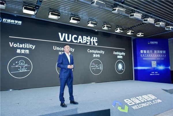 灯塔商学院院长戈志辉首先做主题演讲,他提到,在乌卡时代下,只有通过技术创新与价值创新,才能实现企业增长飞跃,找到破局的新方向。基于此,中国医药物资协会MAH分会、合纵药易购、神鸟健康、金沛方药业等单位联合发起成立灯塔商学院,将服务于全国范围内的医药企业转型升级和创新发展,着力推进数智创新和人才建设双联动,积极探索医药产业组织人才培育新路径,打造中国最具实效的产业数智化学院。