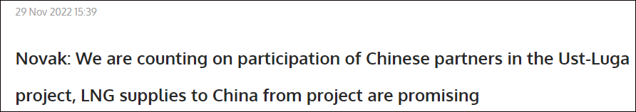 (观察者网讯)当地时间11月29日,俄罗斯副总理亚历山大·诺瓦克出席在莫斯科举行的第四届中俄能源商业论坛。据俄新社和国际文传电讯社报道,诺瓦克表示,希望中方参与俄罗斯乌斯季-卢加(Ust-Luga)液化天然气(LNG)项目,并看好从该港口向中国出口液化天然气的潜力。