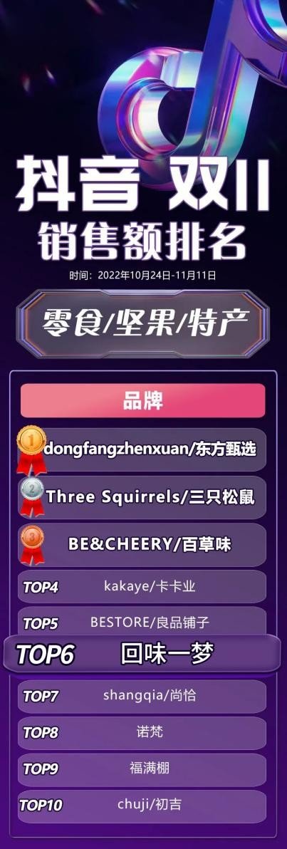 整体而言,2022年回味一梦已用自己的战绩和数据充分证明深耕产品品质、专注营销创新是实现品牌盈利双收的不二法门,2023年“电商年货节”狂欢盛典“抖音鸭肉类零食TOP1”回味一梦品牌实至名归!未来回味一梦继续为消费者推出更优质的产品,更优惠的活动,更创新的玩法,满足消费者口腹需求的同时,带来更多的情感共鸣,最终实现引领中国乃至世界的新一类肉类零食领导品牌!