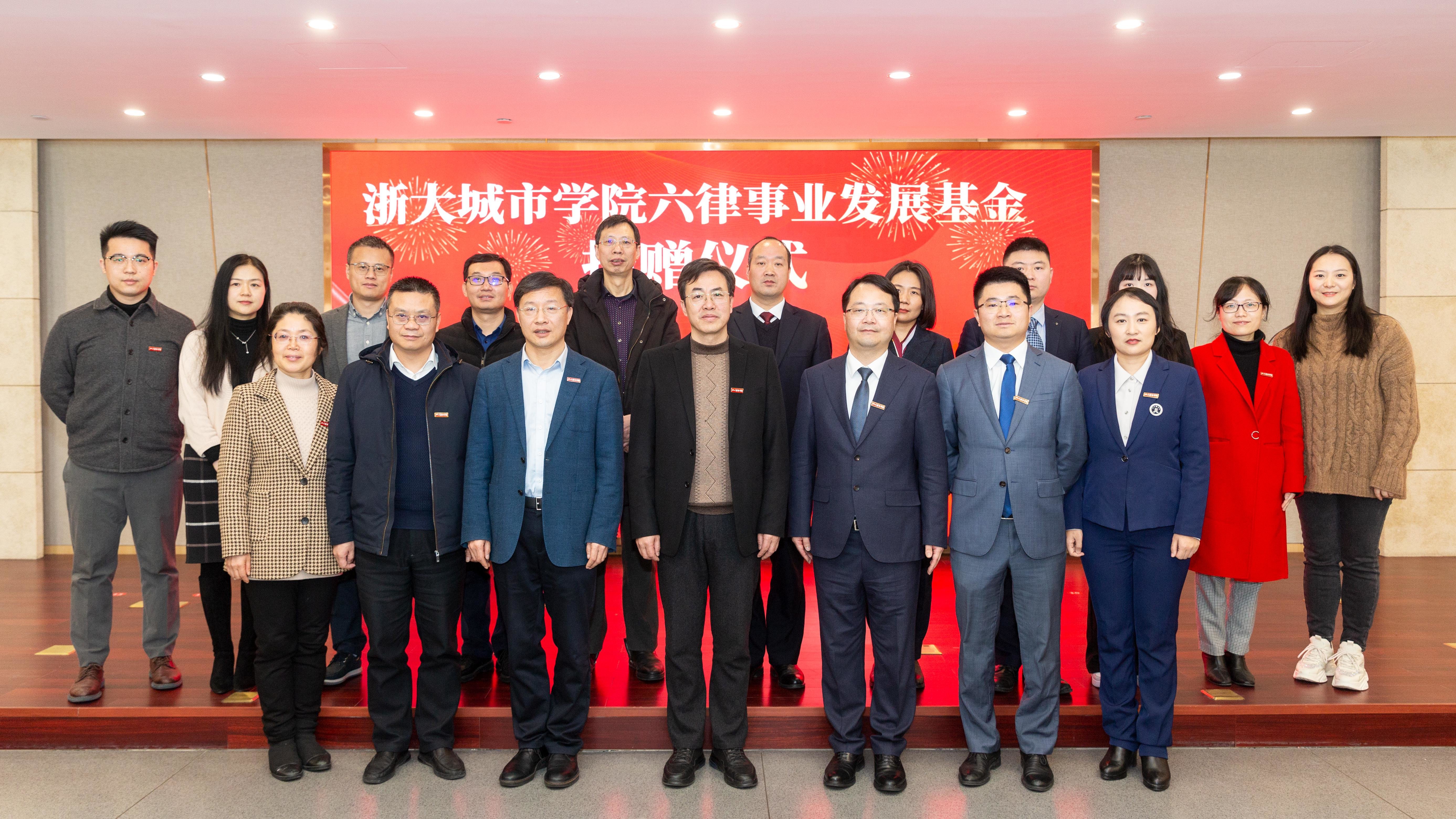 捐赠仪式上,斯荣喜介绍了转公办学以来学校的发展情况并表示,学校取得的成绩离不开社会各界的鼎力襄助与赤诚奉献。“浙大城市学院六律事业发展基金”的设立,是对学校教育事业发展的大力支持。学校将用好这笔基金,以更加开放的育人新格局,开创校企合作新局面,落实立德树人根本任务,进一步推进一流应用型大学建设。