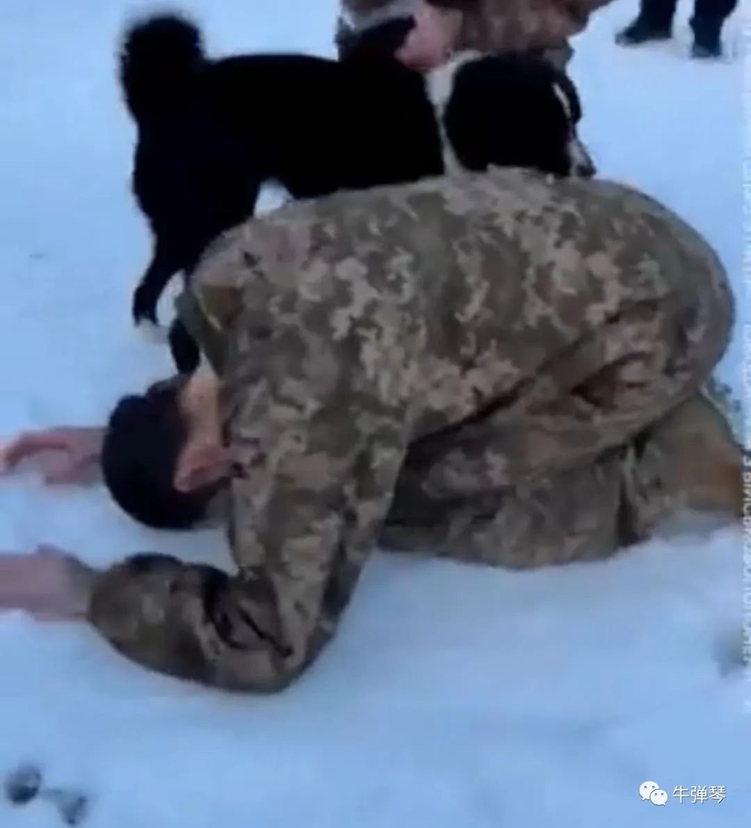 乌克兰方面,看视频,一名乌克兰战俘跪在雪地上,埋头亲吻着大地,久久不愿站起来。
