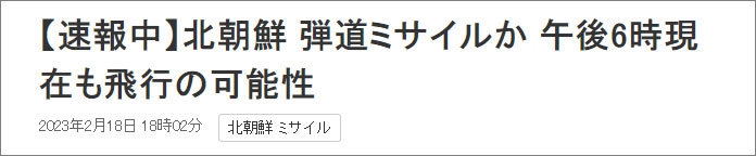(观察者网 讯)据韩联社当地时间2月18日消息,韩参联表示,其探测到朝鲜于下午5点22分从平壤顺安地区向东部海域发射了一枚远程弹道导弹,“可能是洲际弹道导弹”