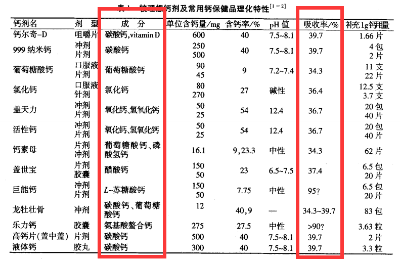 比如,无机钙中的碳酸钙、氢氧化钙的吸收率分别是39.7%和36.7%,有机钙中的葡萄糖酸钙和醋酸钙则分别是34.3%和37.4%。