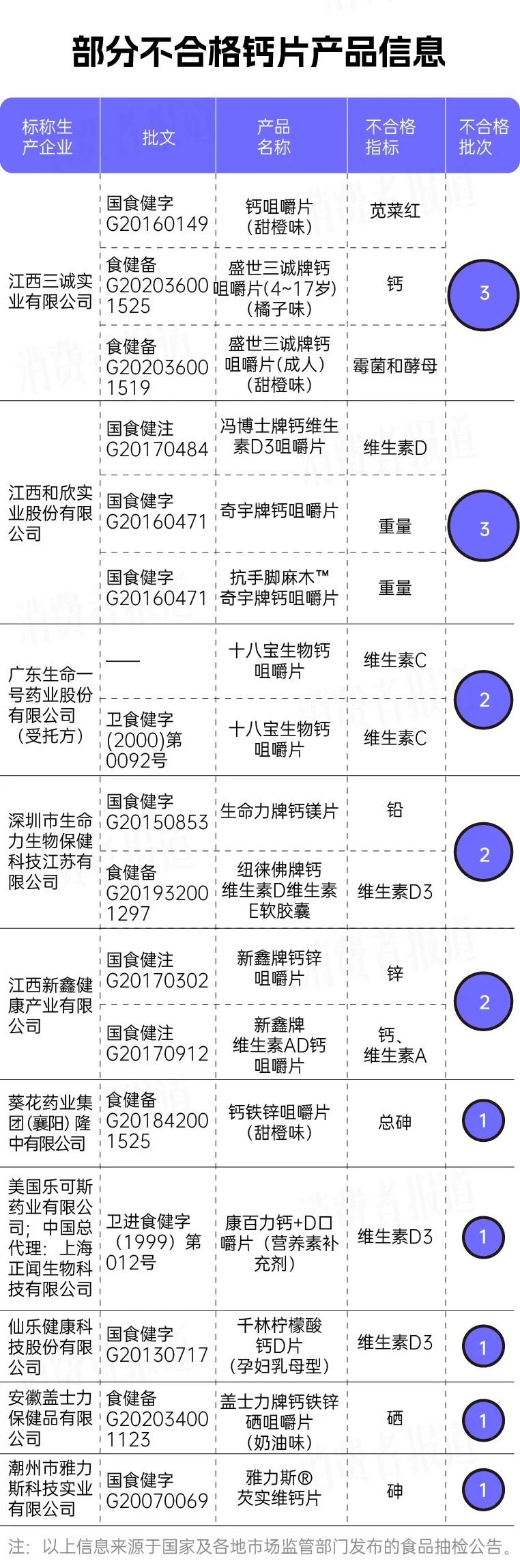 此外,还有一些消费者比较熟悉的知名品牌的钙片产品也有“上榜”。
