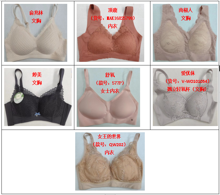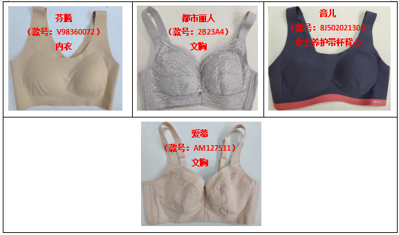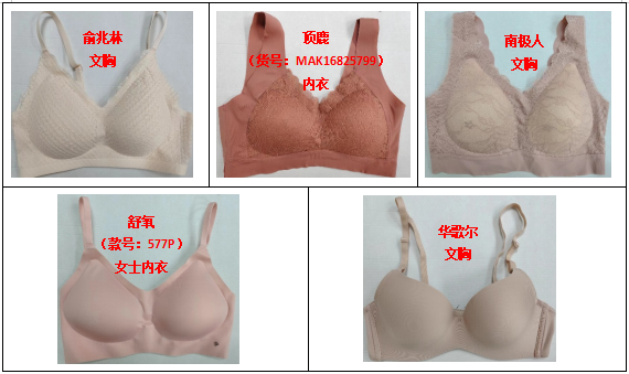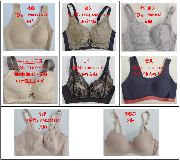 (1)样品上明示罩杯填充物为乳胶的5批次产品中,4批次实际检测罩杯填充物为聚异戊二烯(乳胶),1批次罩杯填充物白色层(外层)材质为聚氨酯(海绵),黄色层(贴身层)材质为聚异戊二烯(乳胶)。