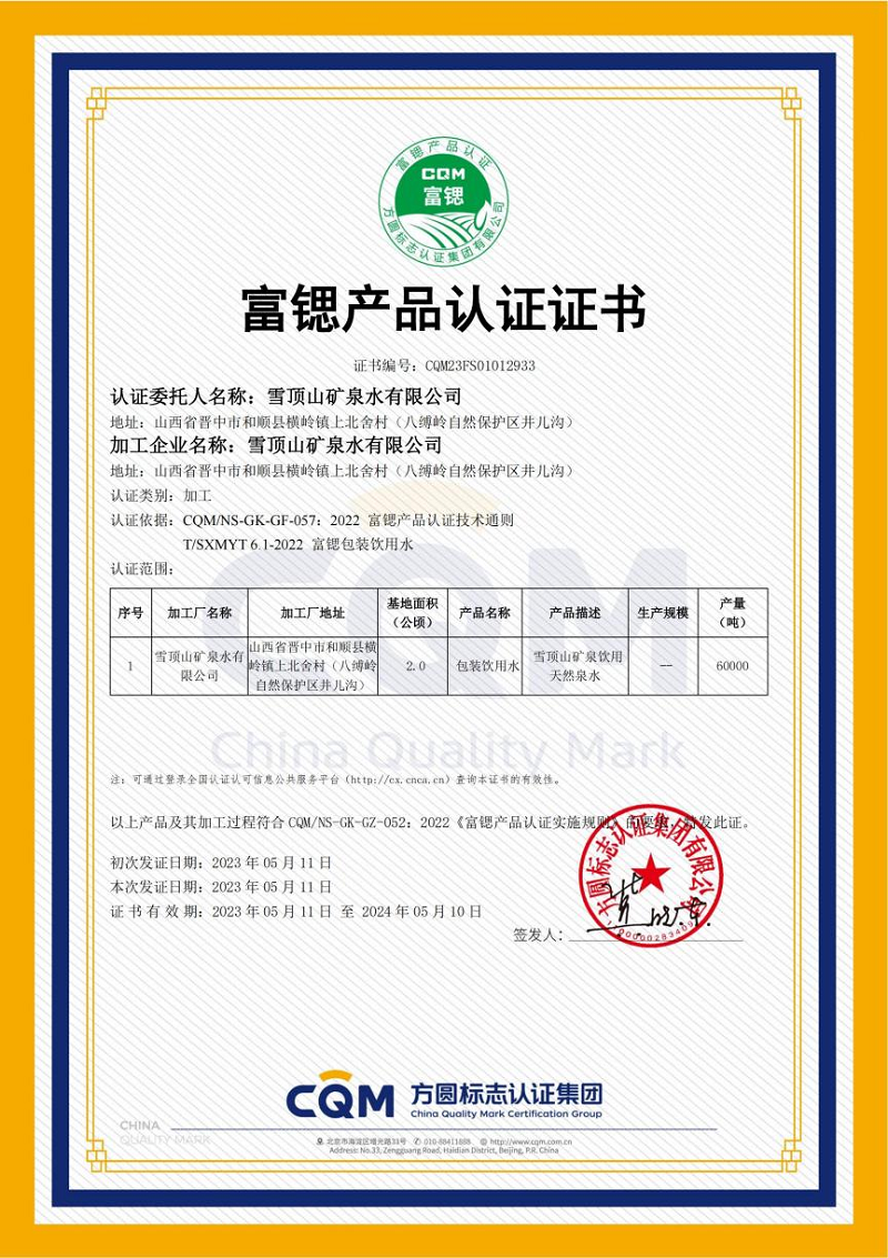 雪顶山矿泉一直以来注重产品质量和消费者健康。通过获得富锶包装饮用水团标认证,进一步证明了其过硬的产品质量以及明显的产品优势。
