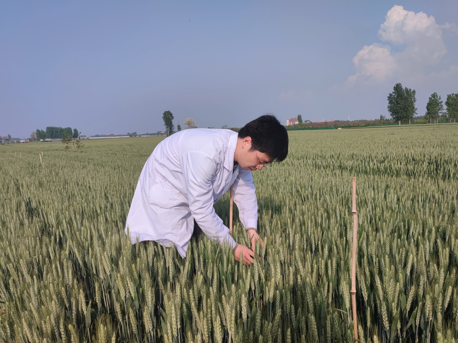 河南农业大学研究生陈奋勇在河南新乡杨街“科技小院”麦田内开展田间试验。(受访者供图)