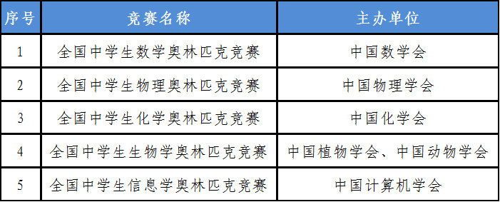 (二)高中阶段在全国中学生奥林匹克竞赛(包括数学、物理、化学、生物学、信息学)中获得省级赛区三等奖(含)以上(详见附件2)。