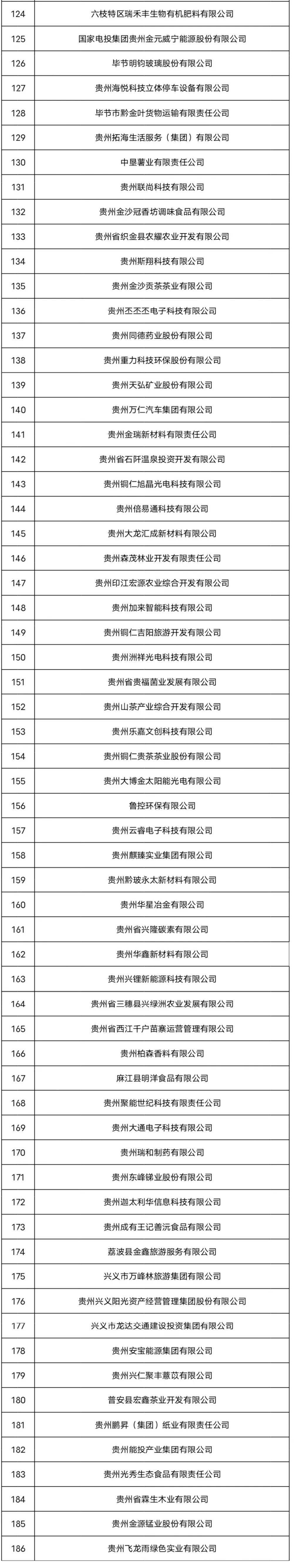 这份名单共上榜186家企业,较2022年名单增加13家,涉及农业、矿产、化工、金融、水利、食饮、科创等多个领域;其中食饮企业相关企业近20家,包含白酒、乳业、调味品、茶叶、农副产品深加工等细分类别。