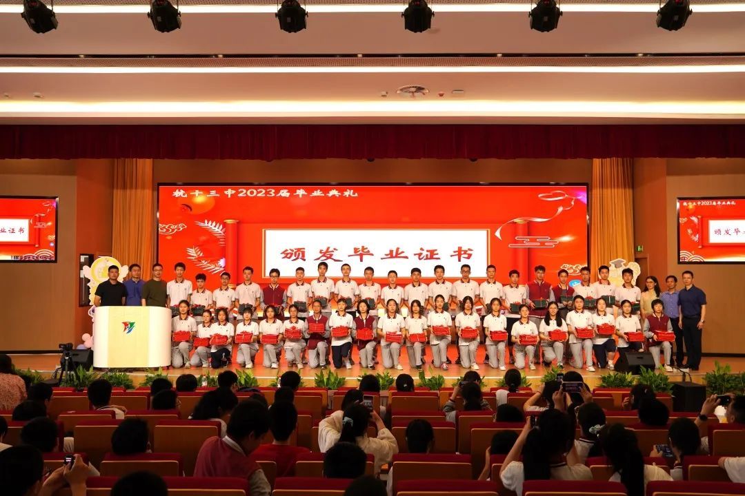 授证书·寄期望,杭州树兰中学2023届毕业典礼上,全体九年级班主任和班长齐上台,从校长沈小兵手中领取班级学生毕业证和毕业照片,沉甸而美好。他也在致辞中,充分肯定了2023届树兰学子德智体美劳各方面的卓越成绩,“育人为先”,强调培养学生对父母的孝敬和感恩之心的重要性,同时,希望树兰学子在这个夏季步入各个高中开启新征程之时,能够更快适应新环境,得到更好的发展。