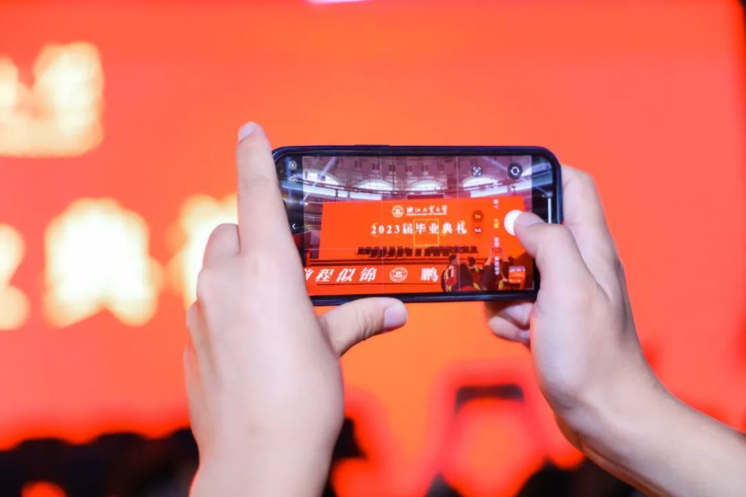 在杭州师范大学附属中学的2023届毕业典礼上,开场长达15分钟的视频剪辑,复盘了同学们高中三年的点滴经历,每一个同学都能在镜头中找到自己,现场的欢呼声一浪赛过一浪。校长陈伟浓也以《扬我辈微芒 共时代荣光》为题,勉励同学们要长久地葆有一颗积极向上的进取心,要磨砺一份持之以恒、处变不惊的定力,并祝愿每一位同学能兴致不改地与世界交手,快乐地行进在鲜花竞放的大道上,与善同行,止于至善!