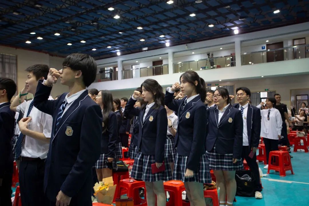 杭二中有个传统,每年的毕业典礼校长都会在每班随机抽取若干幸运儿。在杭州第二中学钱江学校以“奋进新征程 建功新时代”为主题的2023届高三成人礼暨毕业典礼上,校长蔡小雄为为他们颁发毕业纪念证书,并由幸运儿将本班毕业证书领回。副校长邵江良也为毕业生们送上了一份成人礼、毕业礼——那就是以“求是 创新 致远”为内涵的“潮”文化之礼。他说:“十八而志,大任始承,希望你们坚定梦想,勇立潮头,在新征程奋进,为新时代建功!”