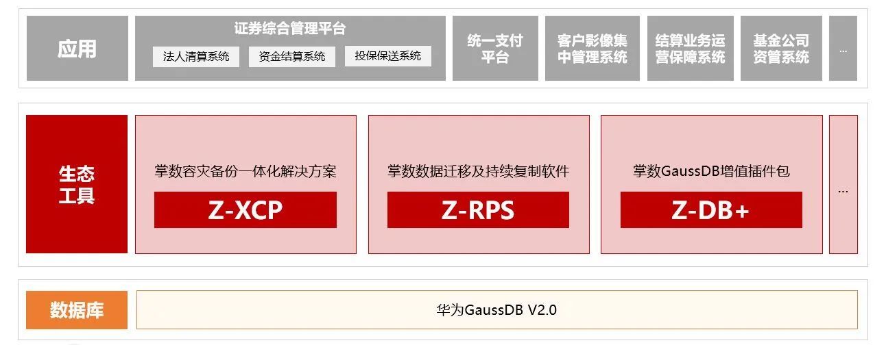 过去的两年多,掌数科技和华为云GaussDB面向金融核心业务系统联合打造了GaussDB完整配套软件,形成全面的产品体系,包括容灾备份一体化解决方案(Z-XCP)、数据迁移及持续复制软件( Z-RPS )、GaussDB增值插件包 (Z-DB+);同时也面向客户与合作伙伴打造了GaussDB技术支撑与服务团队,包含售前面向行业客户的金融创新解决方案,售中阶段创新项目的实施落地,共同打造行业标杆,以及售后的专家支持与专业服务。