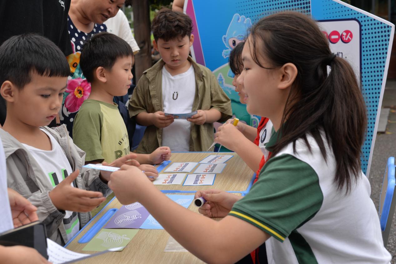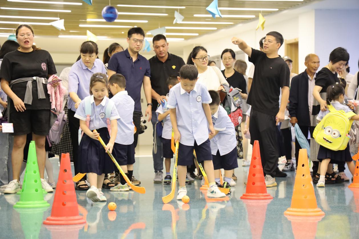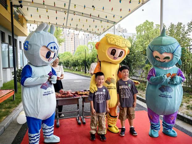 浙江省杭州市三墩小学一年级新生牵着爸爸妈妈的手,和着初秋深情的曲调,走进了亚运氛围感满满的新校园。小朋友们按游园卡上的指示,在爸爸妈妈的陪同下,跟着大队委员们打卡“我为亚运助助力”“我认亚运吉祥物”“我是亚运小达人”“我和兰兰合个影”“我是墩小一员啦”五个校园点位,集齐对亚运的美好五字祝福——一起向未来,争做亚运挑战小达人,积极加入墩小大家庭。