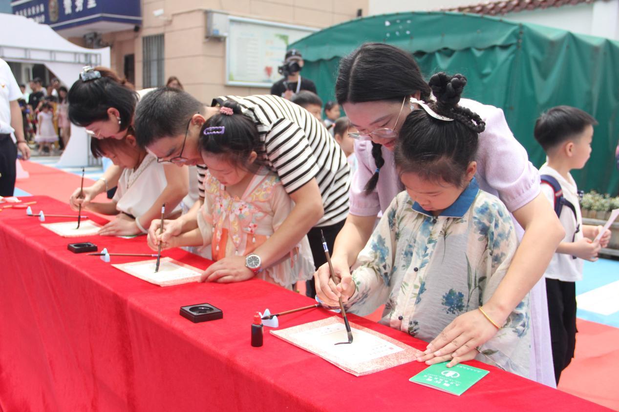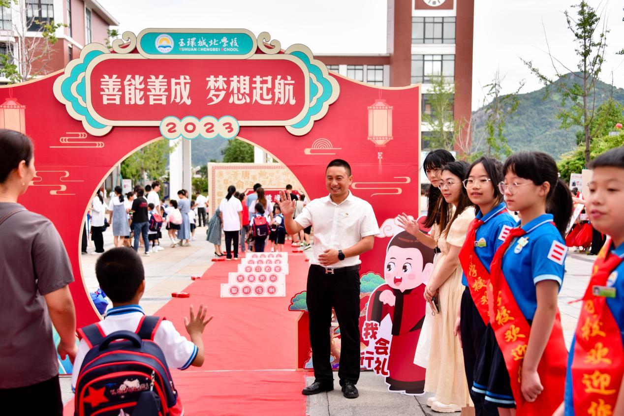 8月31日,玉环市城北学校举办以“善能善成,梦想起航”为主题的入学仪式,一年级新生在家长的陪伴下,入善德门、跨成长阶;寻百家姓、觅新手札;点朱砂痣,启智慧心;以“人”开笔、击鼓明志。