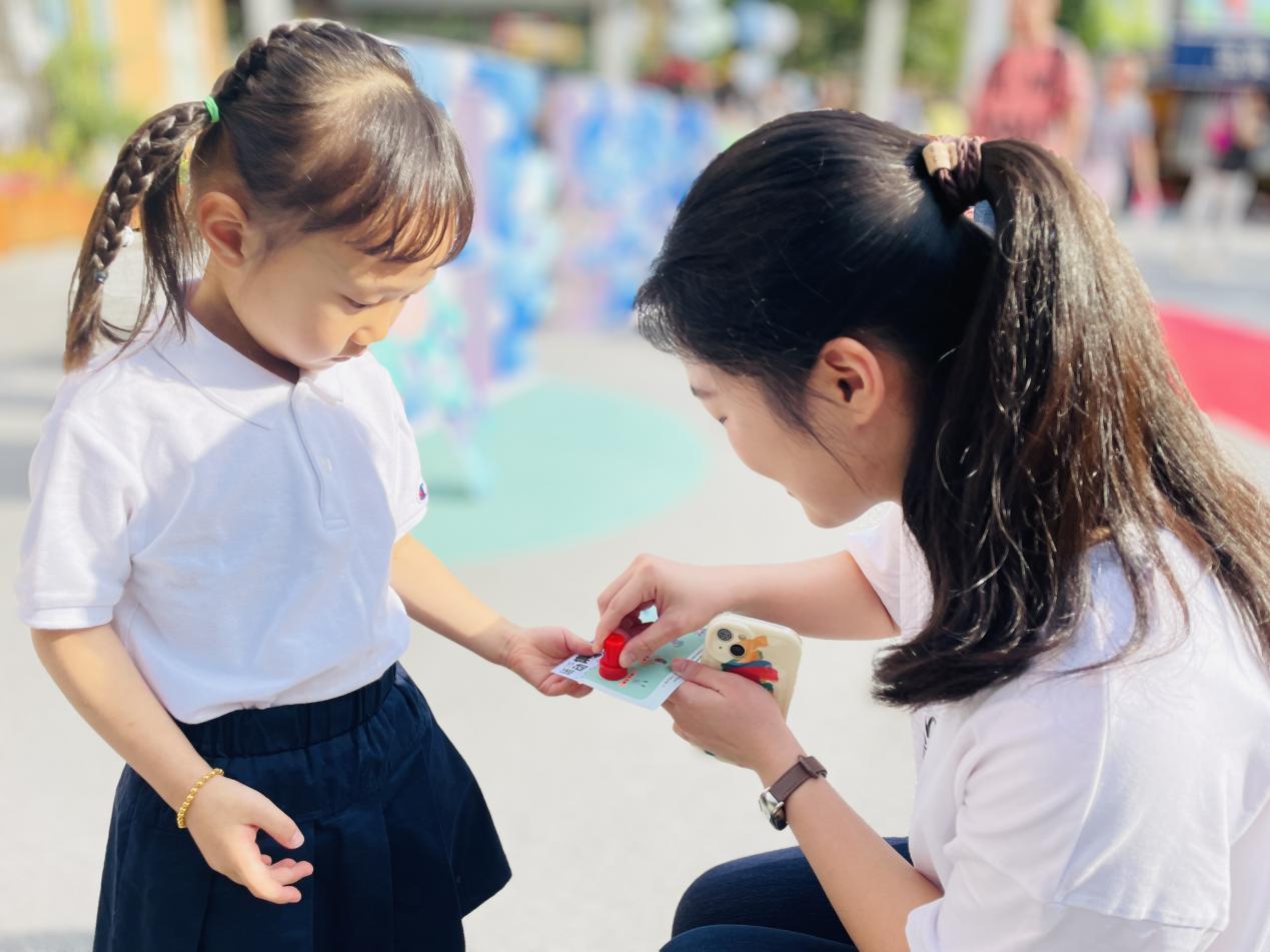 杭州市嘉绿苑小学教育集团隆重举行“开学多巴胺,悦动迎亚运”一年级新生入学活动。欢迎的老师们为新同学戴上了不同颜色的运动手环。新生们凭借着不同颜色的亚运手环,参加相应的亚运体验游戏,化身为“运动达人”。成功通过亚运游戏体验的新生就能获得一枚相应颜色的亚运贴纸作为奖励,赢取“亚运周边”。