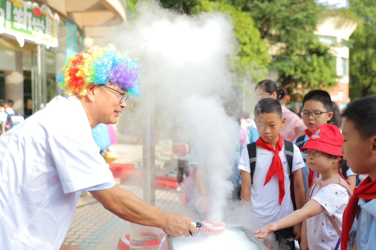 9月1日开学日,杭州市小河小学的周华校长化身“科学魔法师”,脑洞大开地带领孩子们玩起了有趣的科学实验,“腾云驾雾”般的实验现场,让孩子们一起领略了科学的神奇魅力,创意实验乐体验。此次开学典礼以“科技助力亚运,创意提升幸福”为主题,鼓励孩子们奇思妙想迎亚运,创意无限奔幸福。