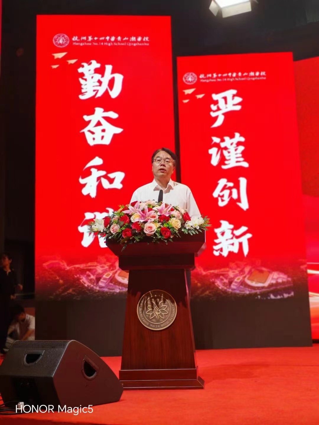 “出发是为了奔赴人生的远方,回望是为了抵达心灵的原乡,我们既要追求生命的长度和宽度,也要追求生命的厚度和强度。”杭州外国语学校党委书记、校长王华琪发表开学致辞,他希望,在杭外,每一位同学都以有家国情怀、有全球视野、有深厚素养的复合型英才为自己的成长目标,面向未来,融入社会,对接世界,扩展自身的生命体验,不断地发现自己,认识自己,重塑自己,成为更好的自己。