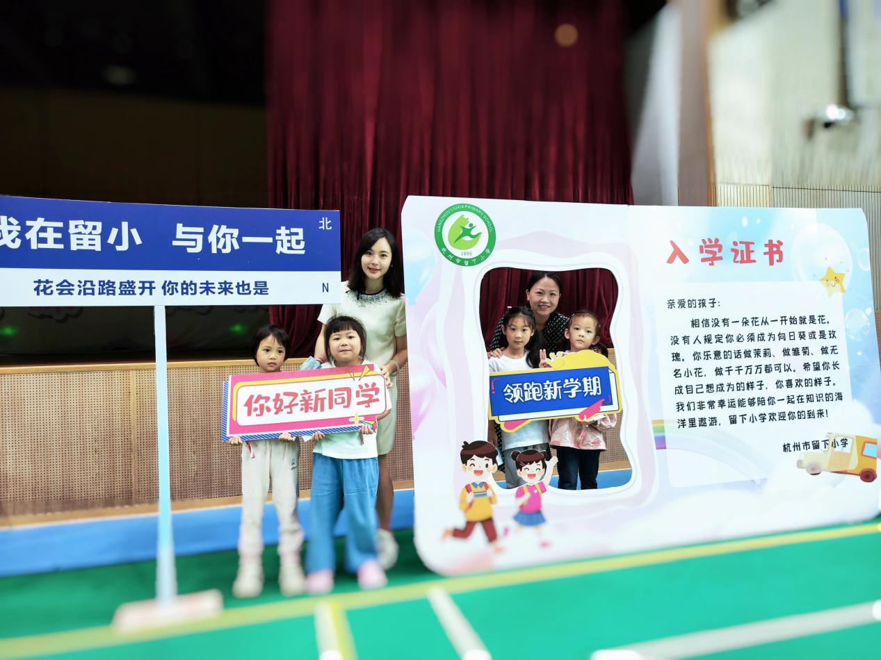 在杭州亚运会召开之际,杭州市西湖第一实验学校以“创享亚运,@未来”的主题活动迎来了新一届茶乡学子。学生牵着爸爸妈妈的手走上红毯步入校园,预示着快乐充实的小学六年学习生活即将开始。他们一笔一画,郑重地在班级签到牌上写下了自己的名字,留下第一张校园生活照,跨过“诚实勇敢”“活泼团结”“文明守礼”“学习自觉”“诚信友善”的“未来”阶梯,奔向自己美好的无限希望的未来。