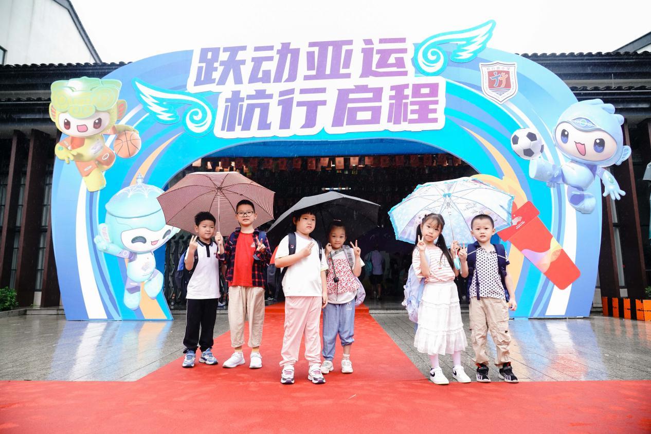 8月30日上午,杭州市余杭区良渚杭行路小学“小萌新”在充满亚运氛围的仪式感中,开启校园生活新篇章。从校门口到教室,孩子们跨越“十大课程目标”知识门槛,穿过迎亚运拱门,来到签名墙前留下了亚运小火炬专属签名,在风雨操场,进行了运动打卡活动,迎“篮”而上、“乒”出精彩,“足”梦启航……完成挑战后得到专属运动章,收获满满的成就感。