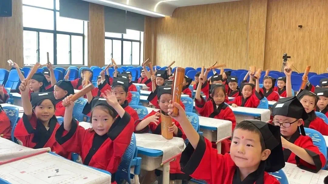 新学期,湖州市吴兴区太湖小学准备了一系列“国风”入学仪式。8月31日下午,一年级新生身着传统服饰,走进太湖小学的“启智尚学”之门。朱砂启智、开笔破蒙、击鼓鸣志……同学们开启新的希望,承载新的梦想。