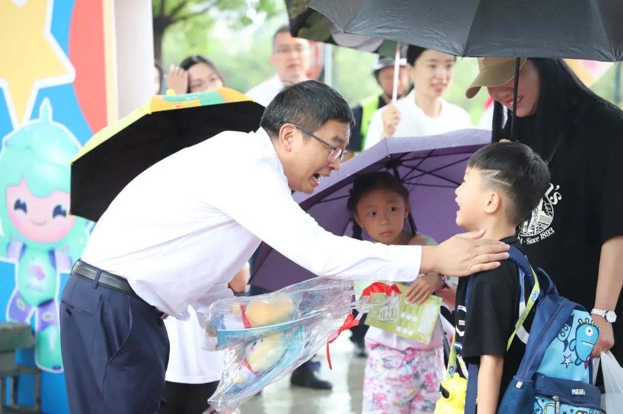 8月30日,杭州市临平区星华实验学校新七年级和新一年级的同学们正式报到入学,大家在签名板前留下在星华的第一个印记。一年级的小朋友们拿上游园卡,接过校长们为新生们送上的入学礼物。大礼包里有星星积分存折、“育星•立德”十会手册、学校吉祥物“星星”“晖晖”,伴随同学们开启有趣的校园探秘之旅。